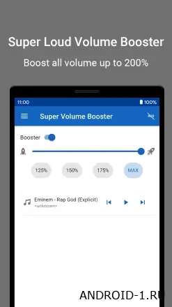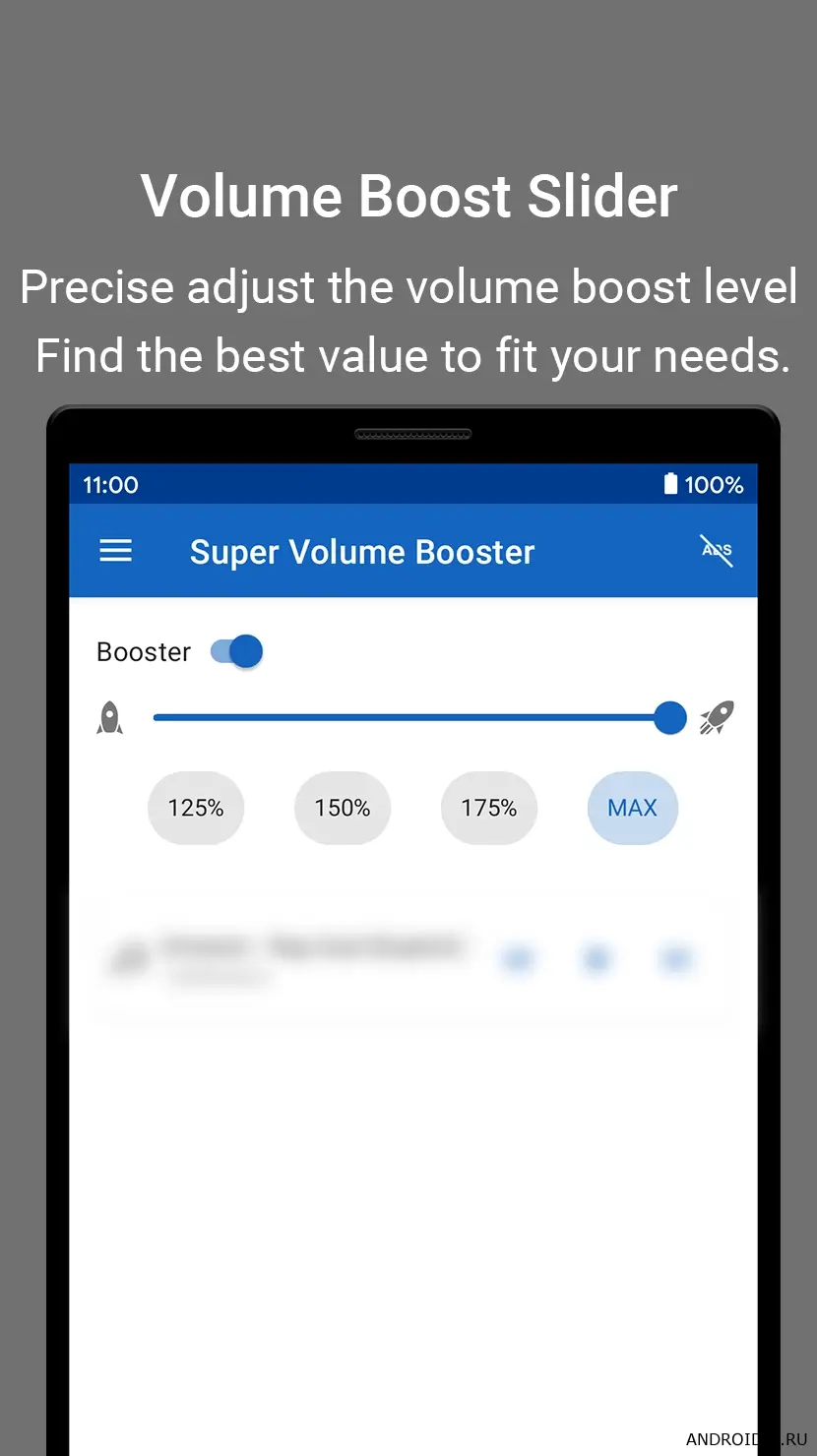 v1.4.3Усилитель Звука,громкости рост — это мощное приложение, которое позволяет значительно повысить громкость звука на твоём телефоне и получить по-настоящему насыщенное, чистое и громкое звучание. Ты можешь свободно регулировать уровень громкости динамиков, наушников и других устройств, настраивая звук под свои предпочтения и особенности использования. Приложение работает стабильно и помогает выжать максимум из аудиосистемы смартфона, делая прослушивание музыки, видео и игр гораздо более приятным и объёмным.