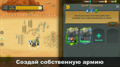 Создавайте армию состоящую из мощных волшебников, воинов с мечами и щитами, лучников и средствами передвижения тех времён. После того как вы создали необходимое количество воинов, просто выпускайте их на поле битвы и наблюдайте как они уничтожают войска противника.