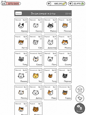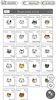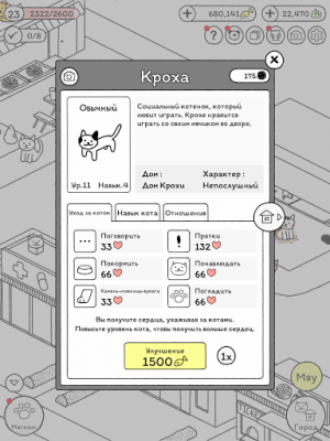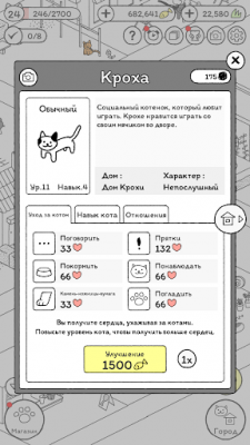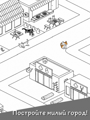 Ухаживайте за своими любимыми котами и собирайте сердечки, чтобы открывать новых котов, вам нужно собирать рыбу и кошачью мяту. Украшайте здания собственного города.