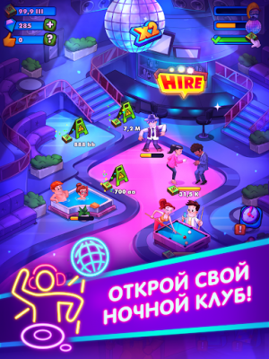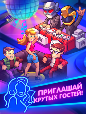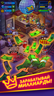 Party Clicker — Idle Nightclub Game (Мод, Много денег) - Вы готовы стать самым знаменитым айдл магнатом? Вы будете владельцем собственного клуба, всё что от вас требуется это кликать по экрану, зарабатывать лайки и монетки. Расширяйте количество мест для посетителей в клубе и сделайте так чтобы вашу тусовку заметили звёзды и приехали в ваш клуб, тогда вы сможете заработать ещё больше денег для развития вашего бизнеса!