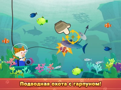В игре шикарное управление одним пальцем, тяните чтобы прицелится, а затем просто стреляйте из любимого гарпуна! В игре вы сможете поймать более 150 видов вид, разных размеров и внешнего вида. Вы сможете выходить в море на разных лодках, ныряйте под воду за новым уловом.