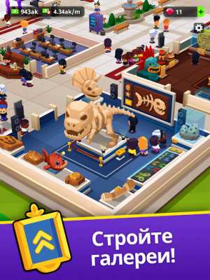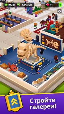 Idle Museum Tycoon: империя искусства и истории (Мод, много денег) - Главная цель этой экономической игры состоит в том, чтобы построить или восстановить музей и начать им управлять, при этом зарабатывать на этом деле не плохие деньги. В качестве объектов выставок тогда могут выступать произведения искусства, различные древние открытия, а также артефакты, скульптуры, разработки различных областей науки. Продажа билетов посетителям помогает получить значительную прибыль для увеличения прибыли музея. Для получения наград составляется тематическая викторина, ответы на которую выглядят как сами игроки.