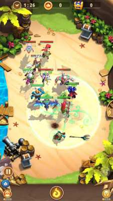 Вы также можете создать армию героев для автоматического сражения, чтобы автоматически сражаться с другими командами в ваше отсутствие и собирать для вас богатство и очки. Эти очки можно использовать для набора более сильных героев и, в конечном итоге, для создания более сильной команды. Чтобы побеждать в битвах, вы должны создавать различные тактики и комбинации героев и выстраивать своих героев в такой состав, который дополняет друг друга и, в конечном итоге, усиливает команду. Нет никаких ограничений в тактике, и вы можете свободно использовать свои мысли в форме военной тактики на войне.