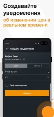 Оранжевый и черный цвета выделяют важные элементы, делая навигацию по приложению простой и интуитивной. Пользователи могут легко переключаться между разными разделами, следить за актуальными новостями рынка, просматривать котировки и анализировать тенденции. Возможность настройки приложения под индивидуальные потребности пользователя делает его еще более привлекательным. Вы можете выбирать, какую информацию видеть на главном экране, какие показатели отслеживать и какую информацию получать в первую очередь.