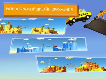 Build a Bridge! - Конструируйте автомобильные мосты через реки, игра в стиле стратегической головоломки, нужно поставить переправу так, что-бы она выдержала поток проходящего по ней транспорта. Игра имеет простую 2D графику, можно создать максимально прочную конструкцию или хлипкую. Как только закончите строительство, переходи в 3D режим просмотра, сможете видеть до мельчайших деталей как по вашему мосту проезжает транспорт, автобусы, КамАЗ, легковые автомобили.
