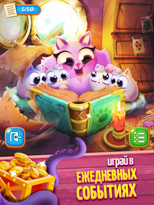 Cookie Cats Pop - это бесплатная игра, которая может увлечь вас на много часов. Она предлагает очаровательные визуальные эффекты с кошачьей тематикой, захватывающую игровую механику и радость от взрыва пузырей. Вам предстоит решать разнообразные головоломки, использовать специальные возможности и развивать свои стратегические навыки, чтобы пройти все уровни и достичь успеха. Не упускайте возможность отправиться в это захватывающее путешествие с котятами и насладиться взрывным весельем в игре Cookie Cats Pop. Разрывайте пузыри, собирайте печенье и наслаждайтесь этой увлекательной игрой-головоломкой!