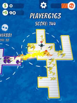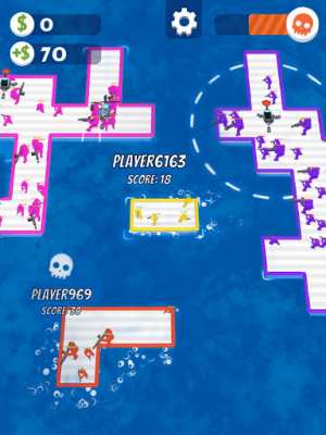 War of Rafts: Crazy Sea Battle - Если вы любите игры в жанре IO, тогда эта игра подходит именно вам! Вас ждут захватывающие сражения с другими игроками со всего мира. Изначально вы будете на маленьком плоту, плавать в большом море в поисках новых деталей для своего плота, по пути своего странствия вы будете встречать противников, после победны над ними - забирайте их плот себе и увеличивайтесь. А подбирая стикменов из спасательных кругов, вы сможете расширить свой экипаж и давать отпор любому своему противнику!