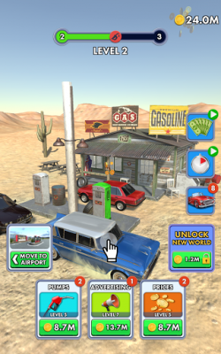 Заправочная станция - «Симулятор тапа» с хорошей графикой, большим выбором для развития и прокачки и разнообразными декорациями. Участникам предстоит пройти путь от обычного танкера на заправке до владельца огромной сети заправок по всей стране и даже по всему миру. Но до этого еще далеко. Важно сразу вложить все заработанное в модернизацию и привести объект в нормальный современный вид, открыть новый, увеличить поток клиентов за счет рекламы и так далее. Список возможных вариантов действий длинный. Это гарантирует очень долгую веселую игру.