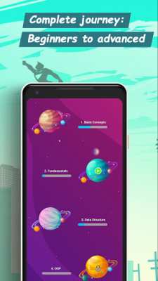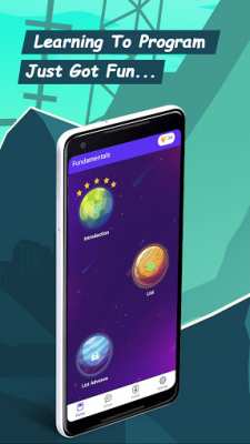 Programming Hero: Coding Just Got Fun - это приложение, которое предлагает обучение программированию в интересной и увлекательной форме. Его красочный интерфейс с изображением разных планет создает интересную визуальную атмосферу, которая может привлечь пользователей и сделать процесс обучения более увлекательным.
