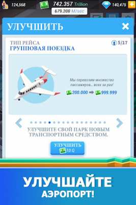 Idle Airport Tycoon - Игра Аэропорт - Приготовьтесь ко взлёту! Вы решили прекратить работу на других людей и начать развивать собственный бизнес, а именно - стать авиамагнатом. начинайте строительство собственного аэропорта, изучайте новые самолёты, добавляйте новые взлётные полосы и маршрут. Обеспечивайте пассажиров самыми комфортными перелётами! Довольные туристы приносят больше денег, чтобы покупать и развивать ресурсы, необходимые для улучшения состояния аэропорта и самолетов. Модернизируйте объекты и услуги аэропорта, чтобы создать самый популярный аэропорт в мире!