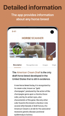 Horse Scanner - удивительное приложение, созданное специально для любителей лошадей и тех, кто хочет углубить свои знания в области пород лошадей. С помощью современных технологий приложение может распознавать породу лошади по фотографии, предоставляя пользователям детальную информацию о породе, ее истории и особенностях. В приложении собрана информация о множестве пород лошадей со всего мира, что позволяет узнавать что-то новое и интересное каждый день.