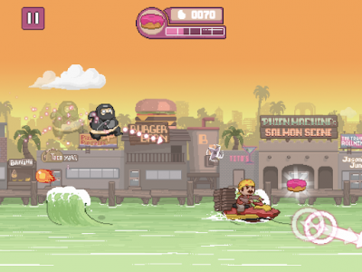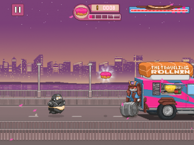 Ninja Chowdown (Мод, Без рекламы) - Пришло время познакомится с Донатсу, это пухлый, но очень ловкий ниндзя. Присоединяйтесь к увлекательным приключениям с интересным персонажем, ведь это динамическая и яркая бегалка. Уничтожайте сотни простых противников и десятки опасных боссов. Проходите множество весёлых и захватывающих уровней, открывайте новых питомцев, одежду и многое другое. Опасайтесь Пицца-Пьератов, Кочующих Роллнинов, Варвакаров и других пищевых боссов. Они такие же опасные, как и вкусные!