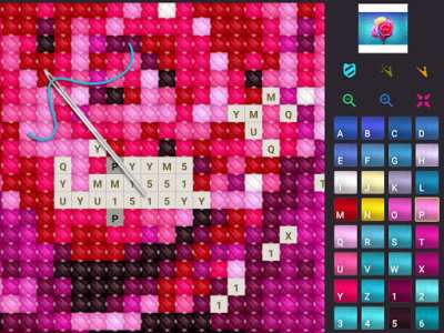 Основное визуальное разделение экрана на две части делает процесс вышивки удобным и понятным. Верхняя часть экрана отображает изображение, которое игроки создают, в то время как нижняя часть содержит доступные цвета и символы. Это помогает игрокам эффективно следить за прогрессом и создавать точные и красочные вышивки.