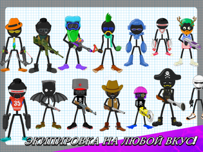 Начните с пистолетов и пейнтбольного ружья и зарабатывайте монеты, чтобы использовать дробовик, Lazorz, Uzis, ракетную установку, AK47, Magnum, Ninja Stars, Tommygun, арбалеты, снайперскую 3D-винтовку, миниган, Sawcannon, мушкетон, гарпун и рогатку, чтобы разблокировать инопланетное ружье. ! Отметьте свое наследие войны палкой, свой крючок крупье и хватайте своего мистера Gun, давай Джонни Триггер!