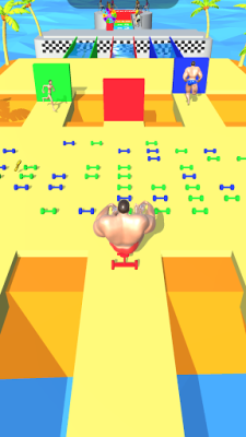 В начале игры вы будете управлять худощавым персонажем, который собирает гантели, разбросанные по яркой дорожке, и поднимает свои штаны. Гантели обновляют вашего персонажа, превращая его из худощавого человека в мускулистого молодого человека, что позволяет вам успешно справляться с различными препятствиями.