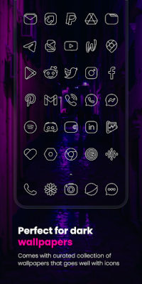 Вы ищете разницу в выборе значков? Тогда Vera Outline White Icon Pack удовлетворит эти различия и создаст более характерные акценты. Приложение предоставит иконки с уникальной белой рамкой на современном темном фоне. Это также легко показывает нам, насколько привлекательно приложение, и всегда создает новое ощущение. Мы заинтересованы в приложении, потому что пользователь сможет изменить и спроектировать его в соответствии со своими потребностями.