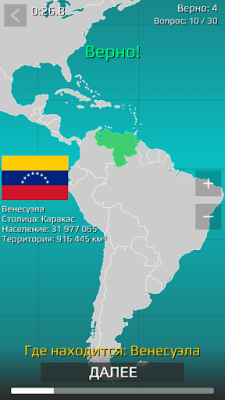 "География: страны мира" представляет собой увлекательное обучающее приложение, предназначенное для проверки и обогащения знаний пользователей о географии мира. Это приложение задает вопросы, связанные с различными аспектами географии, такими как местоположение стран, городов, физическая география, временные зоны и даже созвездия. Викторина по карте мира создана с целью стимулировать интерес пользователей к изучению географии и помочь им расширить свои знания о мире.