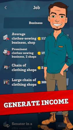 Из грязи в Князи: Финансист (Мод, Много денег) - Забавный симулятор жизни для Android. в самом начале своего пути. вы будете практически бомжом, который не имеет ни жилья ни денег. Вам предстоит искать различные способы для заработка денег, учитесь в колледже, устраивайтесь на первую работу, делать всё что угодно, но в итоге нужно стать президентом страны.
