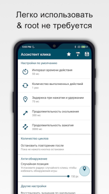 Наложенный интерфейс приложения будет перемещаться по экрану и в панели уведомлений, чтобы помочь пользователям настроить все функции или управлять ими. Это включает в себя настройку последовательности действий или более глубокую настройку кликов для повышения потенциальной эффективности. Конструкция последовательности кликера также может повторяться или различаться по точности, чтобы избежать обнаружения системой или иметь большое значение.