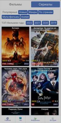 КИНОБАДИ - это программа для онлайн просмотра фильмов и сериалов в хорошем качестве полностью БЕСПЛАТНО ,есть версия для AndroidTV , база контента обновляется каждый день , только у нас есть История просмотренных всех фильмов и сериалов с запоминанием минуты видео. Функционал нашего сайта очень прост и удобен, так же есть сортировка по : Жанрам, Странам , Годам, Популярности , Новизне и т.д.