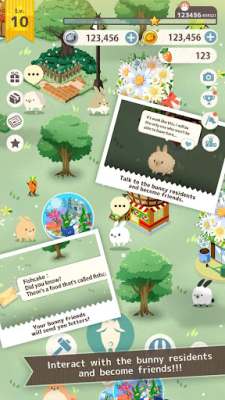 Количество денег, которые вы сможете заработать и затем потратить на строительство новых домов и других необходимых сооружений, зависит от того, как часто вы нажимаете на экран. Получайте ресурсы, тратьте их на различные постройки, модернизируйте здания, покупайте новых кроликов и открывайте дополнительные локации, где можно разместить интересных пушистых зверьков.