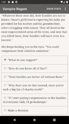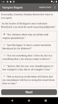 В The Vampire Regent вы будете сталкиваться с множеством противоречий и вызовов в отношениях между людьми и вампирами. Ваш выбор важен: вы сможете искать компромиссы и дипломатические решения, чтобы обеспечить мирное сосуществование, или вести свой народ к войне и конфронтации. Каждое ваше решение будет иметь последствия, определяющие ход сюжета и вашу судьбу в этом мире.